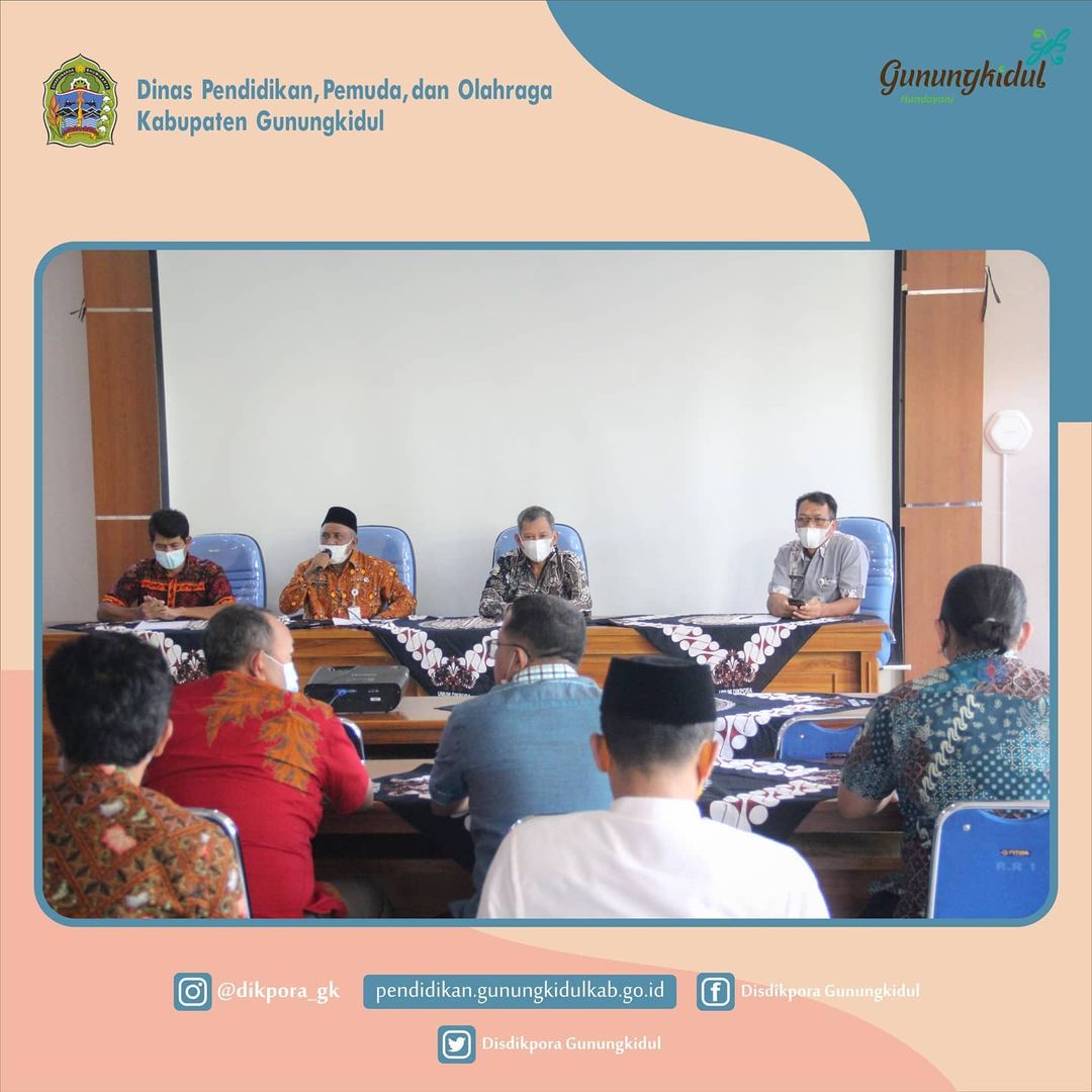 WONOSARI- Dinas Pendidikan, Pemuda, dan Olahraga (Disdikpora) Kabupaten Gunungkidul melaksanakan kegiatan Pembahasan Draf Perbub Tentang PPDB Tahun Pelajaran 2021/2022